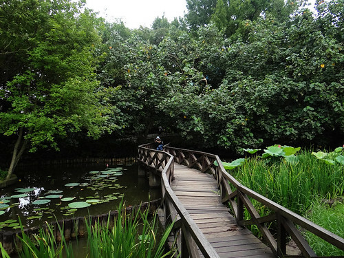 木棧道、涼亭、荷花,這不是位在深山中,竟然是在大台北城市中,相當容易到達的台北植物園內。