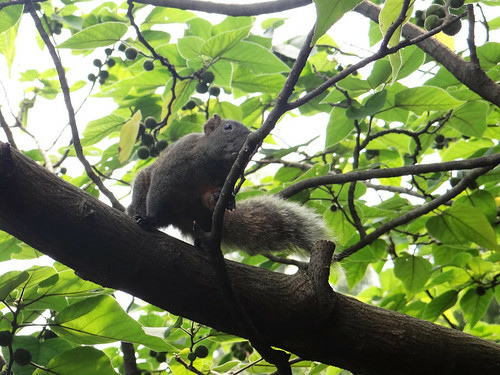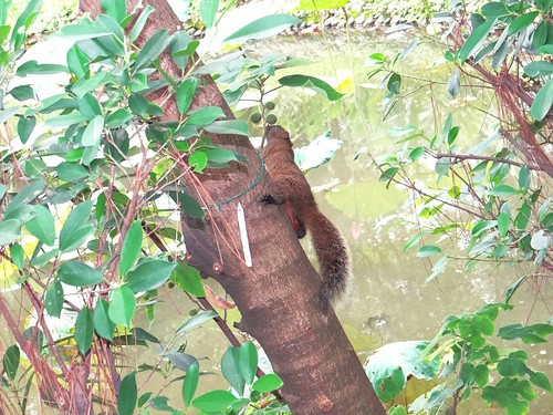 想說走入涼亭坐一下欣賞荷花池,發現樹上有隻松鼠,牠可是很好動滴,想要拍照捕捉牠的身影,只有三個字:快~狠~準!