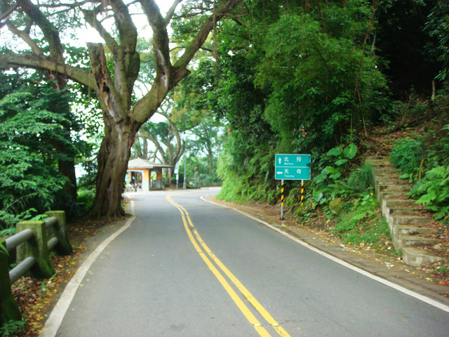 蜿蜒的公路,安步當車,左上方11點鐘的方向即文化大學校舍座落山頂。