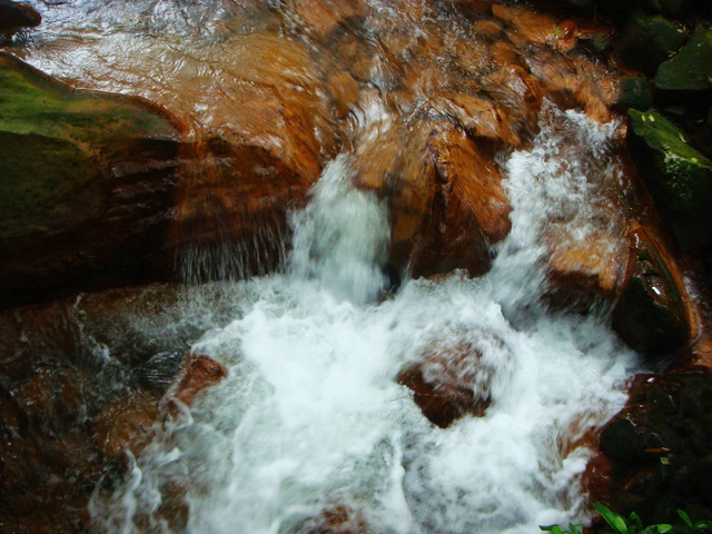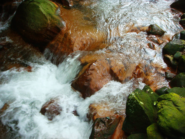 橋下溪水潺潺,白色的水瀑與硫磺物質附著的石頭,共譜大自然跳躍的音符,訴說著悠悠歲月。