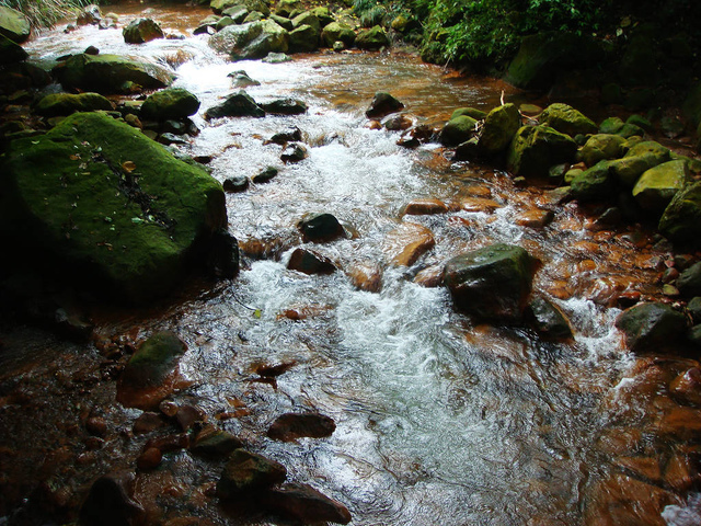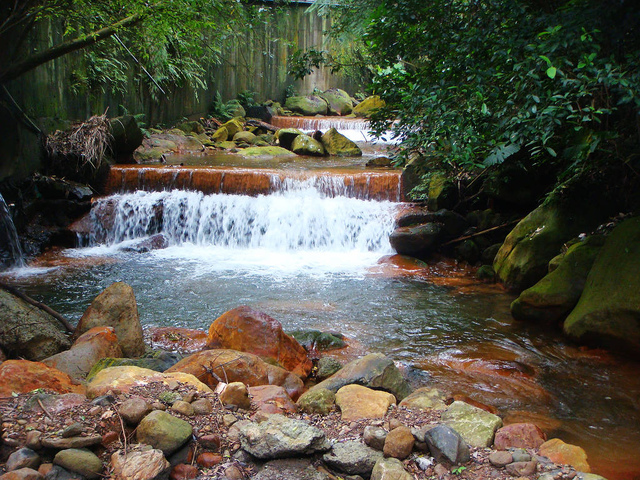 終決定 取左行,水泥小路下來有拱橋越溪過,循磺溪邊山腰路往上走,又經過第三淨水廠鐵門深鎖路叉,