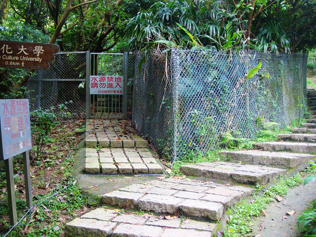 再往前經打印亭,左下有叉路往翠峰瀑布至慈母橋,續直行,轉為花崗石階梯步道,路叉左「水源禁地請勿進入」(第三淨水廠),直行階梯往上爬。