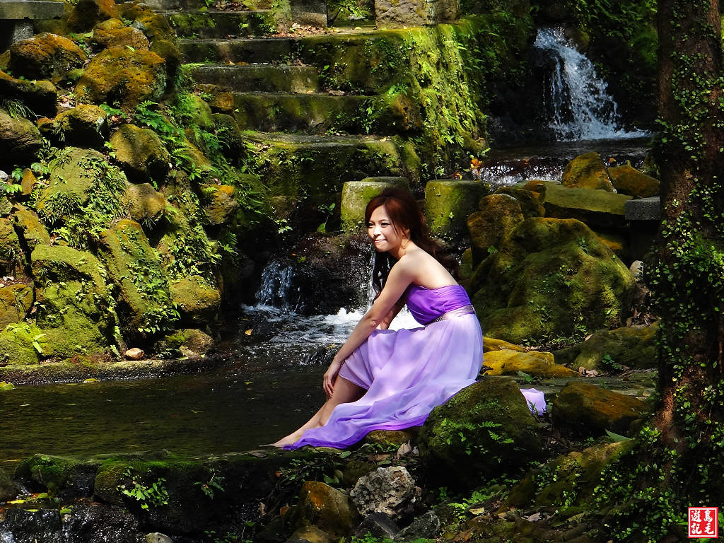 美麗的新娘子 一襲紫色婚紗輕飄 臉上洋溢幸福的一抹 迷人笑嬮蝴蝶光 漸漸展開