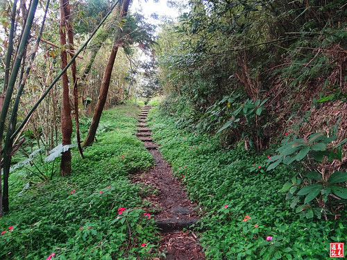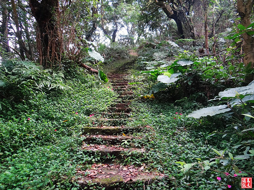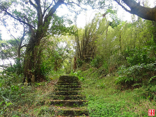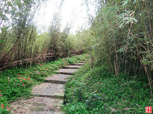 離開中山樓往下走 新園橋一號旁有古樸石階步道陡上