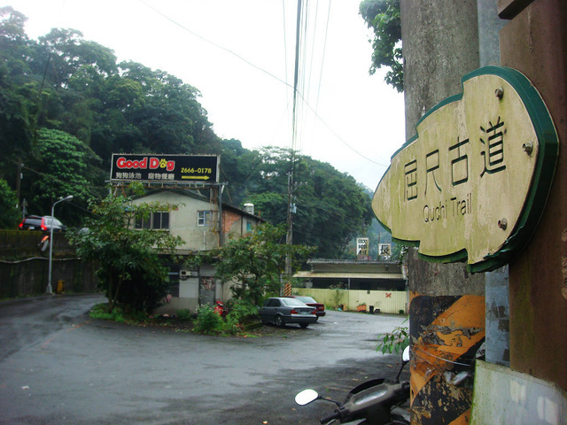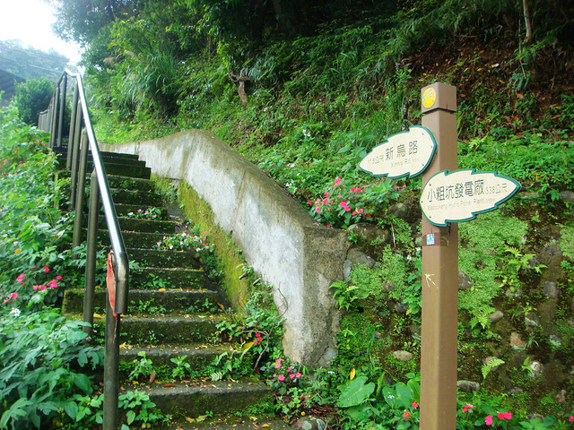 天氣不太好不想去爬山,搭乘新店客運往烏來班次,經過青潭堰後在小粗坑站下車,叉路口依照指標方向屈尺古道,