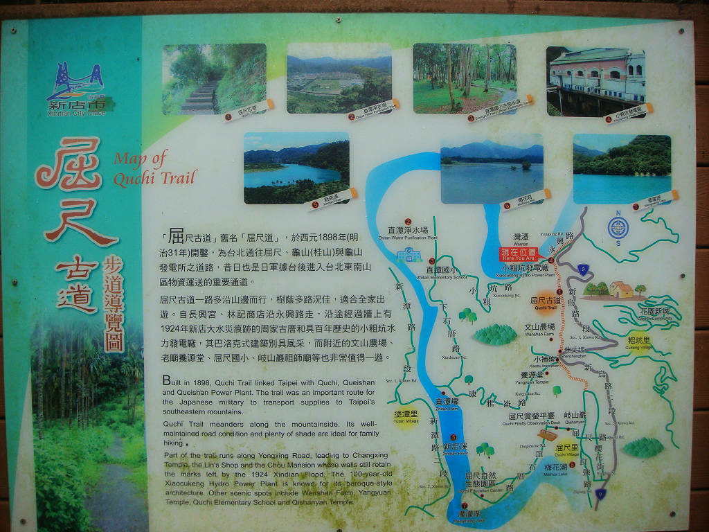屈尺古道舊名「屈尺道」,據載西元1898年間開鑿為台北通往屈尺、桂山電廠間道路,途經小粗坑水力發電廠,見其巴洛克式建築別具風采。