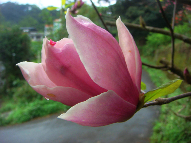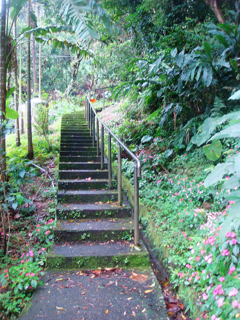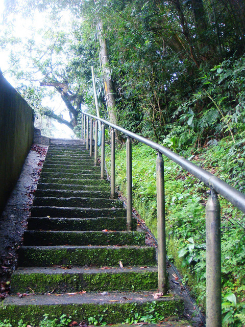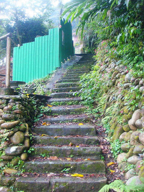 民宅駁坎之間種植木蓮(有稱木蘭),就像是長在樹上的蓮花,風姿綽約,再繼續依照指標往新烏路,一段覆滿青苔水泥階梯。