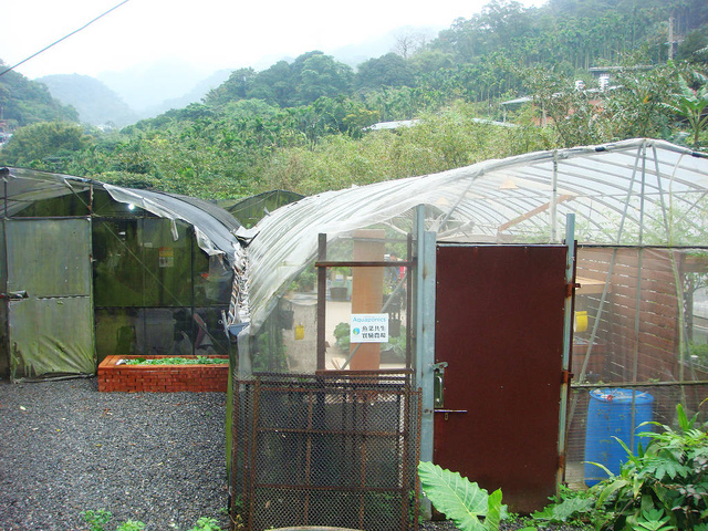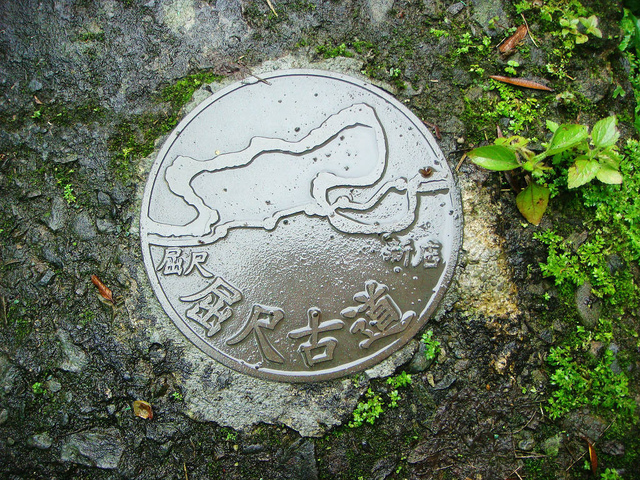 發現地上有屈尺古道圓形標記,續經魚菜共生實驗農場旁柏油路緩上。