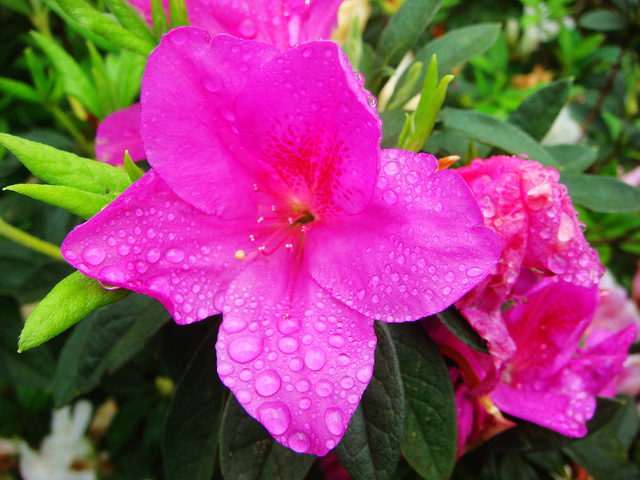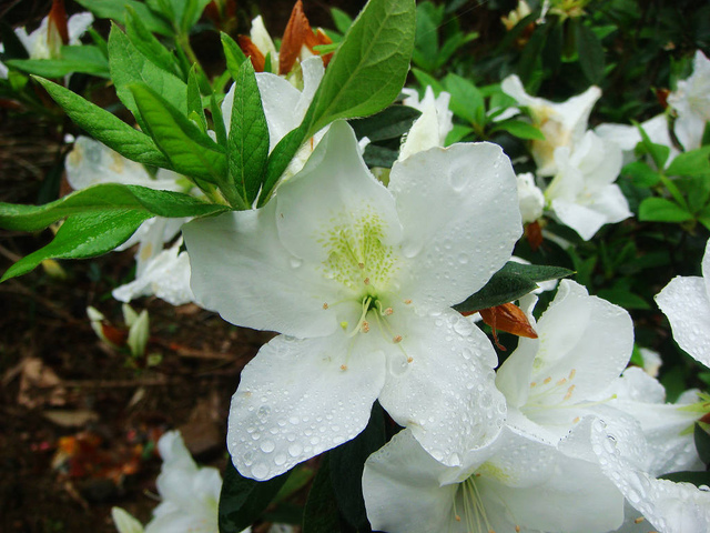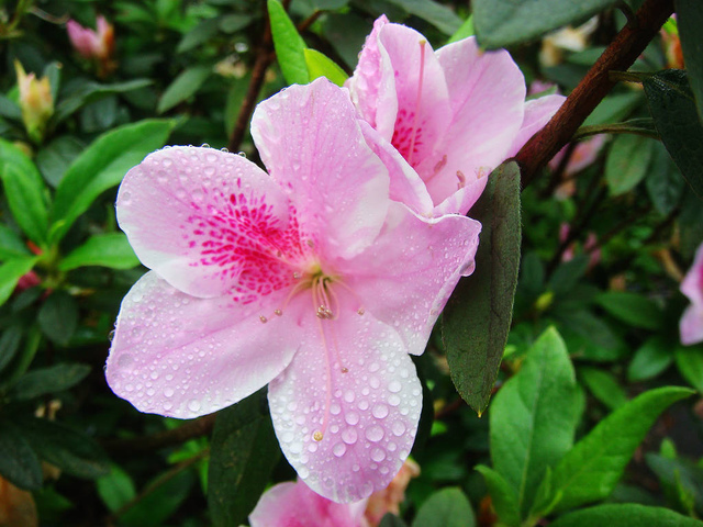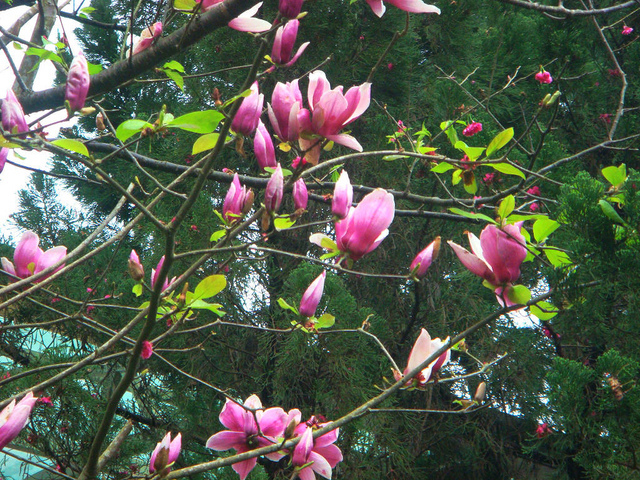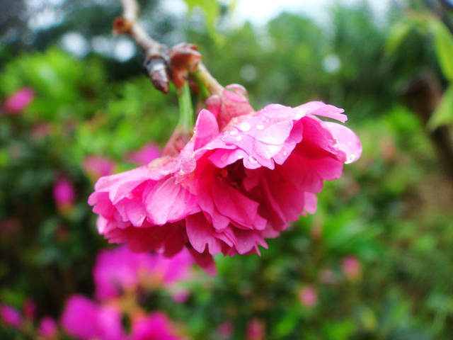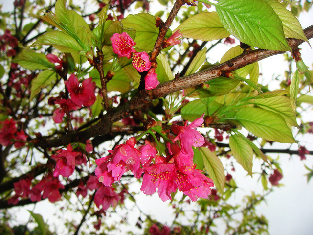 櫻花街遍植櫻花,有八重櫻、昭和櫻,山櫻花已爆出新綠,也有桂花飄香,粉紅、潔白與桃紅杜鵑盛開,宣告春天已經來臨了。