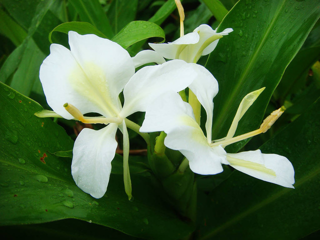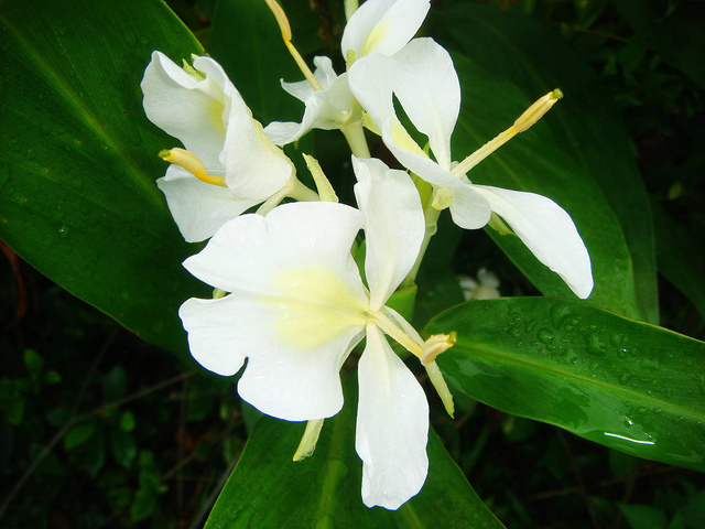 自行車道旁驚艷清新脫俗淡雅芬芳的野薑花,空氣中有著淡淡的甜美幸福滋味,只不過有些微的風雨來攪局。