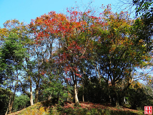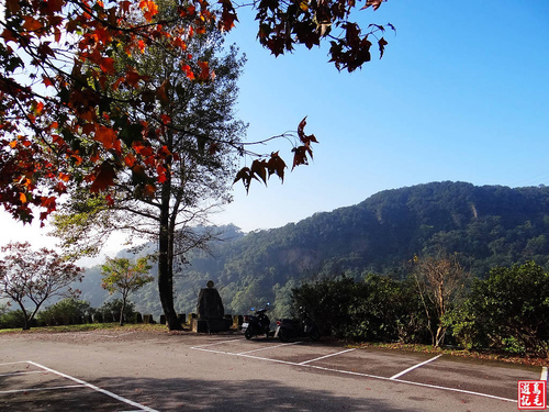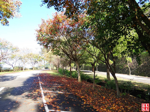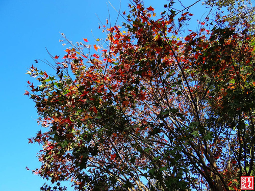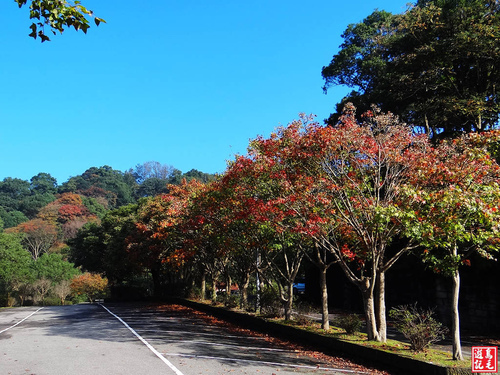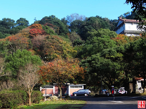 位於拱北殿下方的停車場這邊,成排的楓樹差不多已紅了六、七成,但是也掉了三、四成,