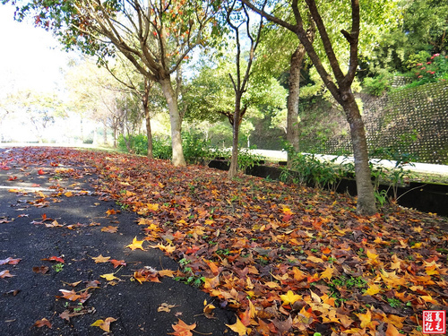 有的楓葉還來不及轉紅,多已枯黃被雨打落滿地,憑添幾許失落惆悵。