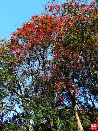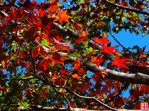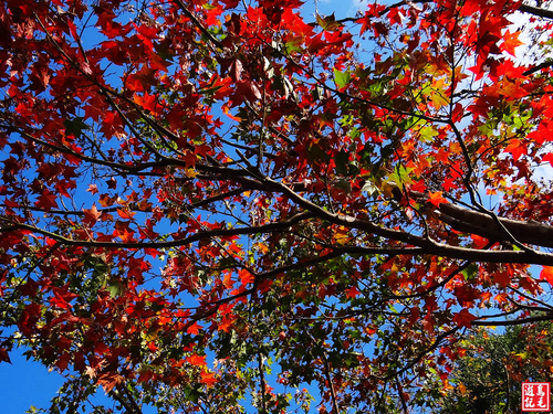 楓葉就是要夠紅才漂亮,紅得淋漓盡致,紅得熱情如火,讓人意亂情迷,流連楓樹下不忍離去,只想把妳最美的身影,擁入懷中據為己有。
