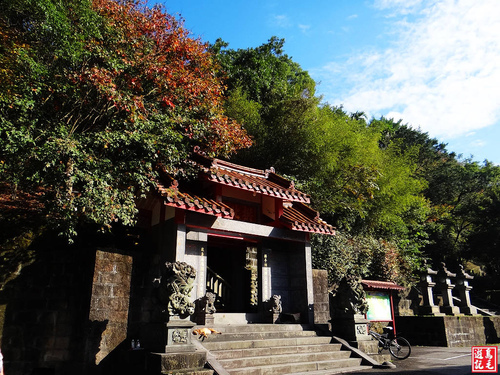 賞楓宜及時,來得早不如來得巧,楓紅美景搭配日本和風古剎廟宇建築,拱北殿牌樓後方青綠的山坡,正逐漸染紅微醺漫延開來。