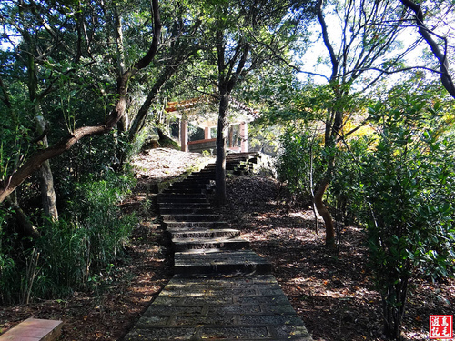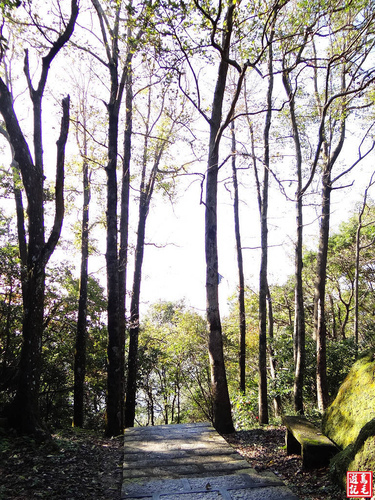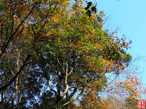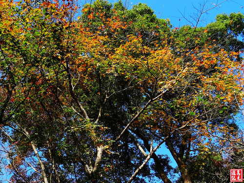 經拱北殿後山步道最高點川流亭下往望月亭,高大的楓香已是枝葉稀疏。