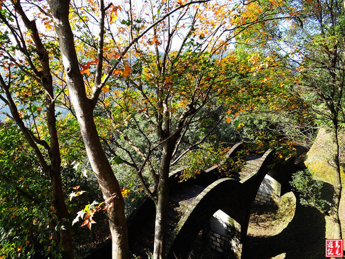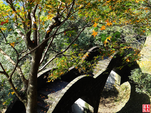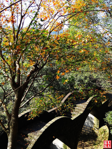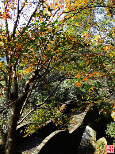 爬到拱橋旁的邊坡,拍一下雙拱橋楓情。