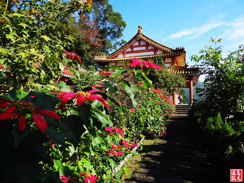 往功德堂步道旁,此際聖誕紅已是葉綠花紅,宣告聖誕節的腳步已悄然接近。