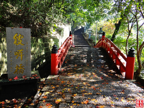 彼岸橋是來拱北殿賞楓必拍景點,可惜這兒的楓樹至今依舊綠意盎然,美中不足,讓人有點失望。