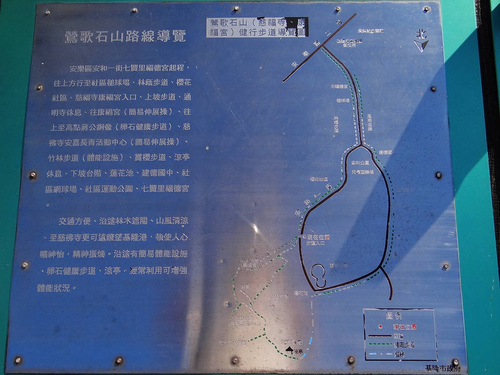 從慈佛寺正前方的水泥階梯上來,小平台的地上有林務局設置基石1座,