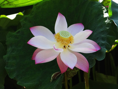 夏日的荷花已然接近尾聲,但見滿池綠葉荷花,艷陽下依舊清新動人。
