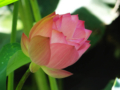 荷花粉紅的花瓣,如出水芙蓉般的美艷動人風情,就算頂著大太陽底下,也讓人想多看一眼。