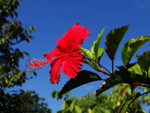先取左前方上山看風景,這是一條長青早起會路線,階梯兩旁花木扶疏,有大紅朱槿、扶桑花、金露花、桂花等,