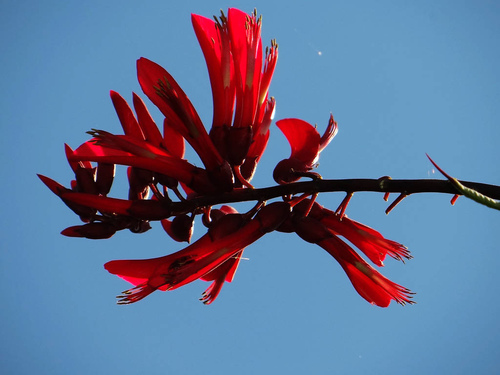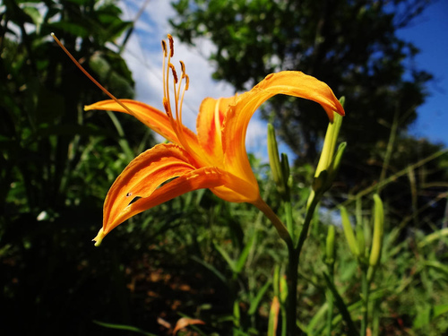山坡上的樹蔭下,享受涼風吹拂,觀賞基隆地區風光,刺桐、朱槿、金針花各領風騷。