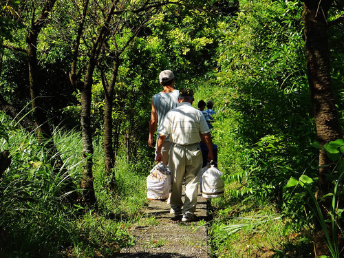 水泥階梯至廢棄碉堡結束,此處設有休息站,五六個鳥友帶著愛鳥上山來,一邊品茗泡茶一邊談鳥經。