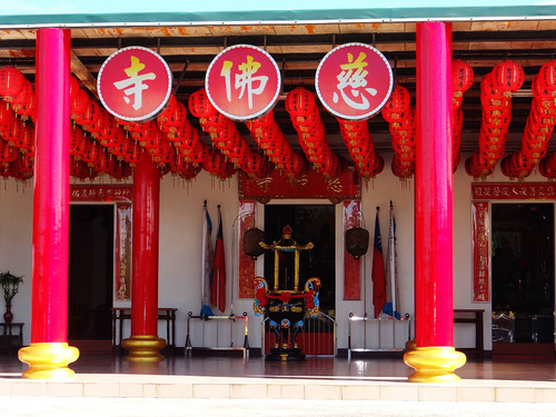 循著水泥路步行約10分鐘來到慈佛寺,旁邊就是康樂山莊長青活動中心。
