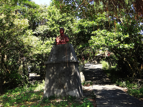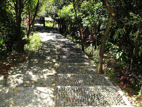 再往前下坡路卵石階梯,可以做腳底按摩,促進血液循環,步道續從蔣公雕像旁下來。