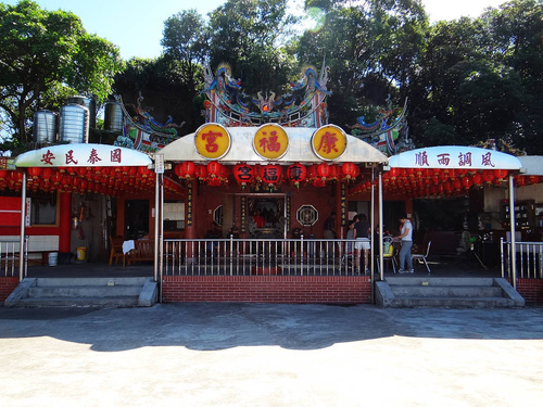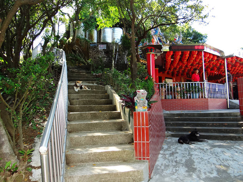 此處另有車道從山下上來,停車尚稱方便,旁邊就是康福宮土地廟,面向宮廟的左側有陡階往上,指標獅球嶺砲台。