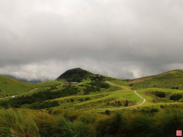 強烈對比的色調,灰濛濛的天空下,山巒與草原仍堅持不改青綠本色。