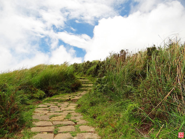 我從平菁街95巷底坪頂古圳親山步道而來,經內雙溪古道水路上擎天崗,風和日麗的廣大草原上,昂首闊步邁向竹篙山。