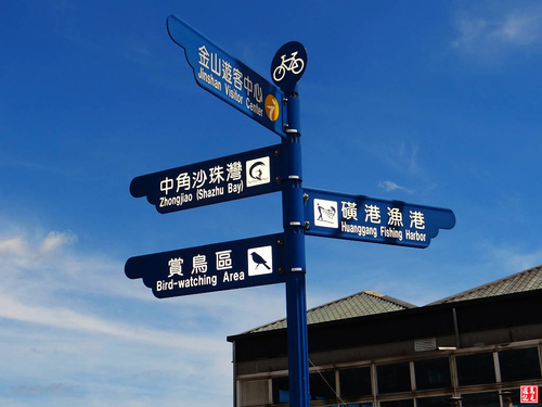 經過金山遊客中心,左彎續行(直行是通往獅頭山公園,有步道往獅頭山燭臺雙嶼、水尾漁港神祕海岸),