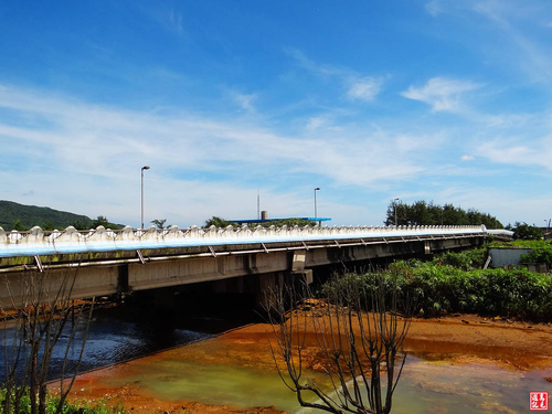 磺清大橋隨著磺清路完工啟用,自橋中向兩端斜張設計,從淡金公路上遠遠就能看見,今日已成為金山區新地標,我在橋下避日稍微休息一下。