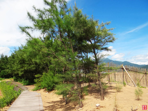大熱天來此不為泡溫泉,也不為買魚貨、吃海鮮,我只想吹吹海風,看看海岸風光,沿著松林旁小徑而行,