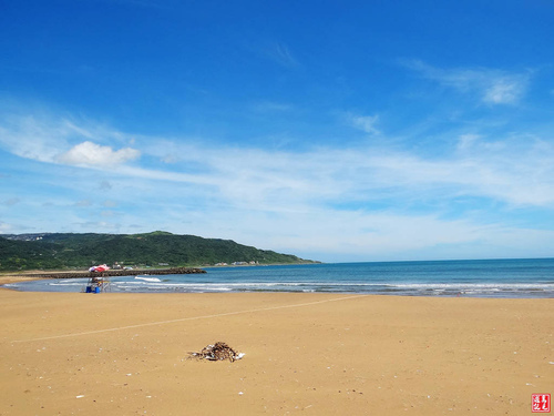 再經金山青年活動中心,公路續往下,已接近磺港漁村,海風陣陣猛吹,把我的遮日傘吹翻開花。