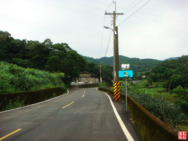 漸往上走,山腰間縮為單線道,下方陸續出現茶園景觀,再往前又是雙線道,過北21縣道2K之後,前方已望見村落、製茶廠。