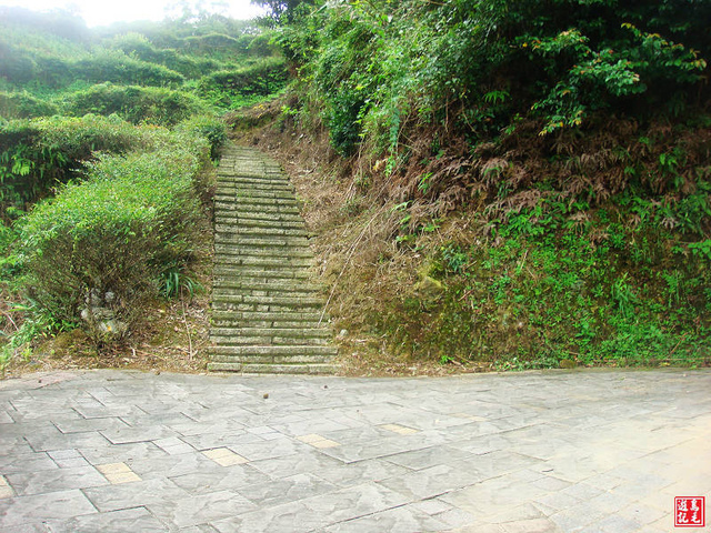 茶園上方是茶山步道主線終點,階梯口有指標往「筠園1.1Km」,就是通往金寶山(已故歌星鄧麗君墓園所在),今日天候不佳為時已晚,原路折回下山還有3-4公里,故不取。