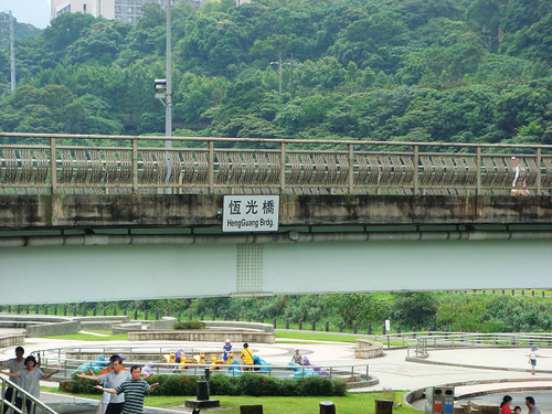 恆光橋下有人打籃球、太極拳及跳舞運動,此處設有直排輪廣場、品茗廣場、兒童遊樂場、健康廣場、教學廣場、表演廣場及渡船頭廣場等。