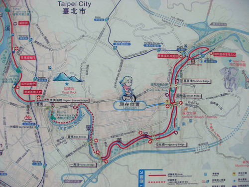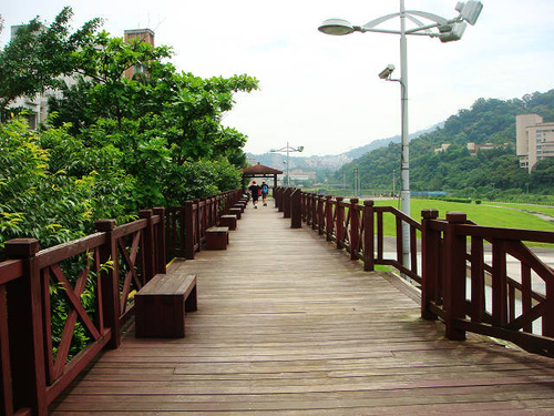 景美溪河濱自行車道設施完善,有路燈照明、安全護欄、休憩涼亭、座椅、公廁等一應俱全,串聯景美、木柵、道南幾個河濱公園,
