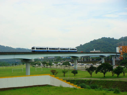 景美溪對岸動物園纜車站,一列電聯車經過跨越景美溪的高架橋段。 日期:101.5.19 天氣:晴 步行里程/時間:約8公里/2.5小時