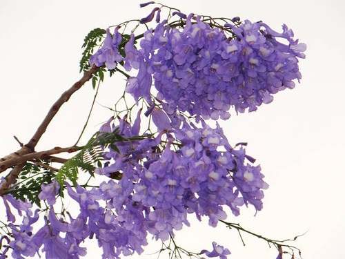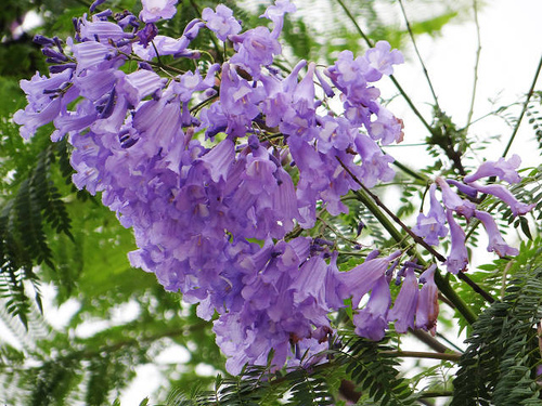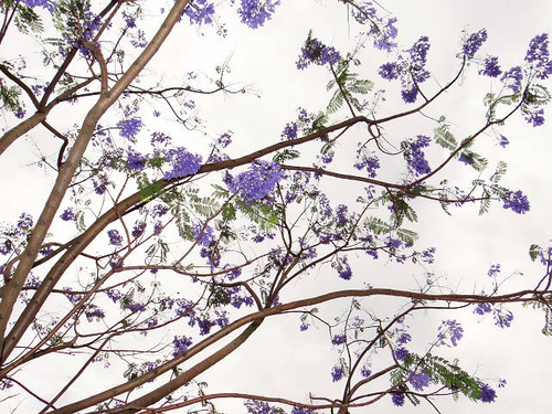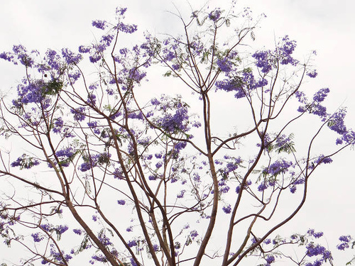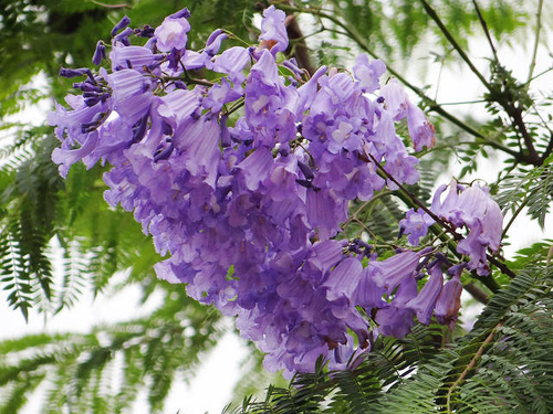 據查藍花楹原產於巴西,紫葳科,又稱巴西紫葳,植株可高達7-12公尺,算是開花樹木當中的巨人。