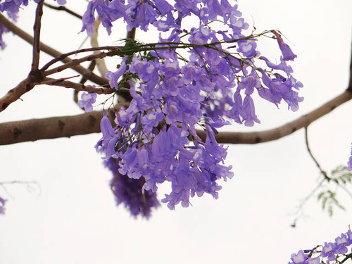 沒有藍色的天空,風卻很大,第一次和藍花楹的邂逅,靠近她身邊,