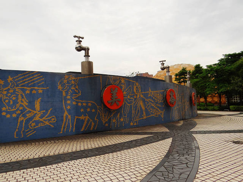 在科教館後面有一座美崙公園,幾個巨大的水龍頭經過特別設計,不見水管,大量的水懸空冒出。