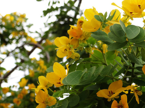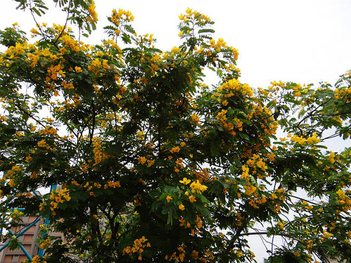 雖然樹葉沒有對面的鳳凰木多,開花沒有很茂密,體型也比較嬌小,