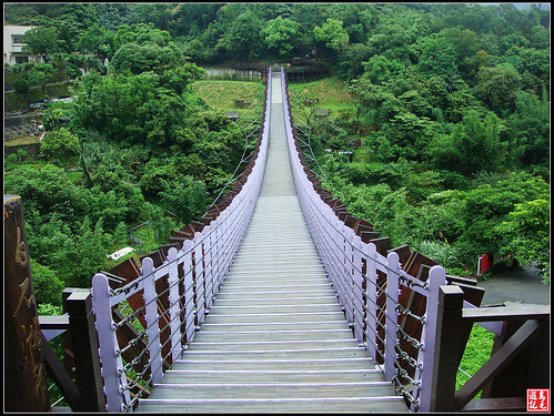 步行在寬大的吊橋上,這白石湖吊橋沒有一般吊橋搖搖晃晃讓人膽顫心驚,卻具有十足的吊橋之美,