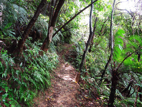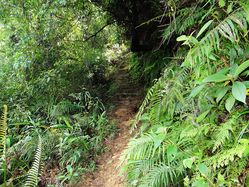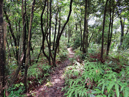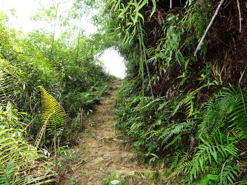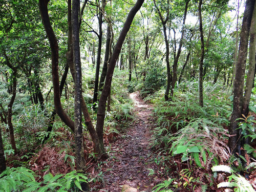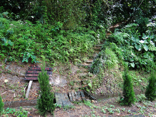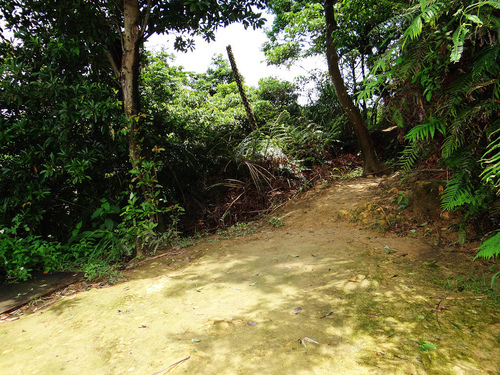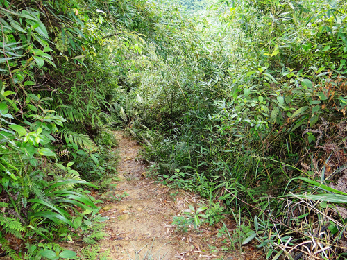 此步道是屬於短而陡的原始泥土路,如果下雨天實在不宜行走,從竹林旁上來有一小空地,可以稍作休息,往前即進入樹林芒萁區。