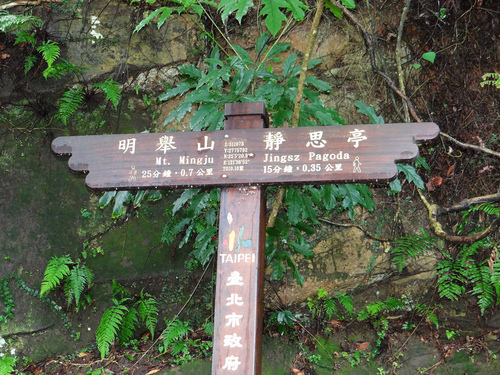 一時好奇想走看看,看到市政府所設的步道指標,左往明舉山0.7公里,右往靜思亭0.35公里,加起來才1公里多一點點而已。