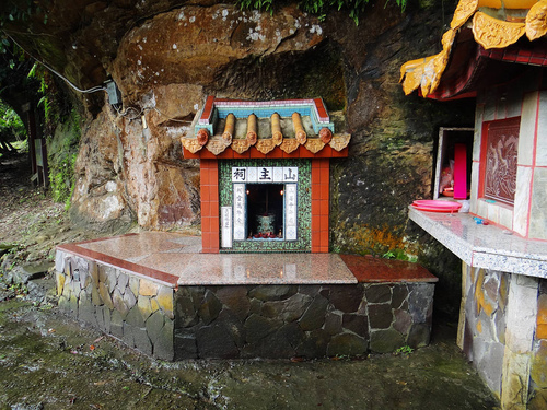 取左先往靜思亭方向,往前數公尺水泥路左有一山主祠(山神廟),目前香火不斷,旁還設有金爐亭,